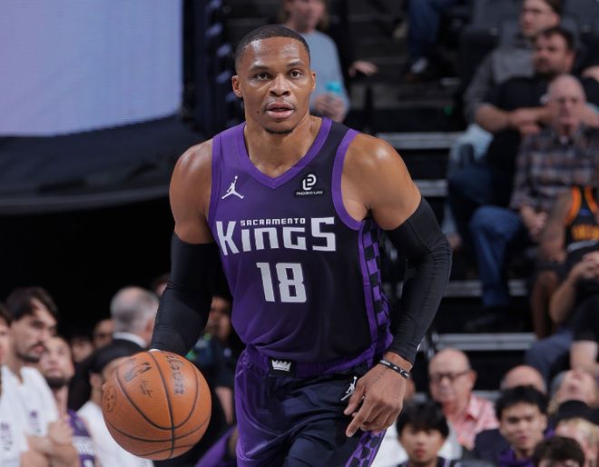 生涯第204次拿到三双,成为NBA历史上首位在7支不同球队都拿到三双的球员!本赛季当威少首发时,他可以贡献场均19.3分9.8篮板6.0助攻1.8抢断,真实命中率高达65.3%!国王的最大短板,就是没锋线,他们连续好几场摆出双控卫+双分卫+一中锋的首发,威少要去对四号位,身边也就德罗赞能够稳定贡献能量。威少的表现也成功打动教练组,如今坐稳首发。不过屋漏偏逢连夜雨,球队内线核心萨博尼斯,还遭遇肋骨伤势,本场比赛依旧无法出战。面对旧主雷霆,威少绝对有120%的能量带队争胜。
