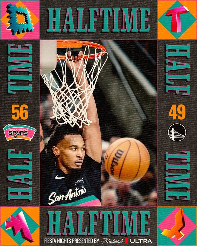 马刺队的卡斯尔上半场得到14分、5个篮板和7次助攻,文班亚马得到13分和5个篮板;勇士队的库里得到15分、3个篮板和3次助攻,穆迪得到14分,巴特勒得到10分。