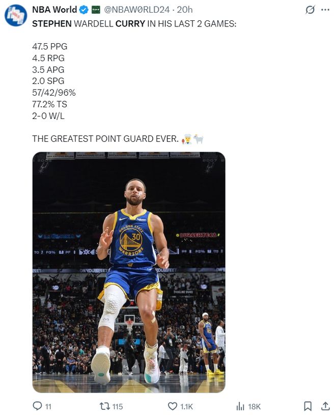 勇士媒体专门制作了这张GOAT的宣传海报,再度盛赞库里。