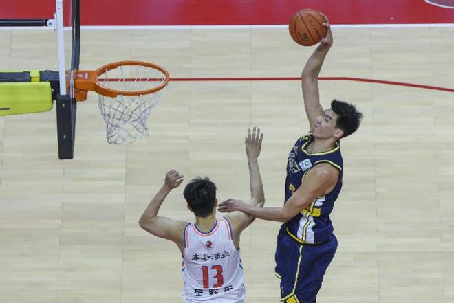 3月12日,广东东阳光队球员徐昕(右)在比赛中扣篮。新赛季徐昕被租借加盟广州队。新华社发