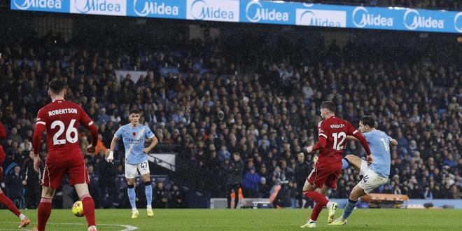 上半场补时第3分钟,利物浦再遭重创。尼科·冈萨雷斯禁区外远射,皮球击中队长范戴克腿部后变线入网,曼城2-0领先结束上半场。