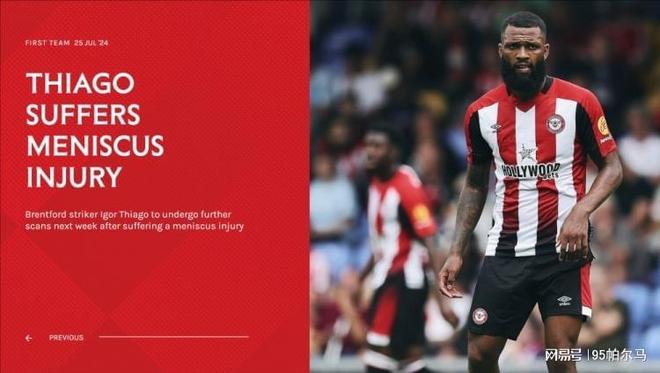 要知道去年刚刚以新人身份加盟布伦特福德后,在热身赛中梅开二度的蒂亚戈的膝盖就遭遇了半月板受伤,本以为熬到11月复出属于迟到的约定,然而膝关节的感染再一次推迟了正式首秀的时间。