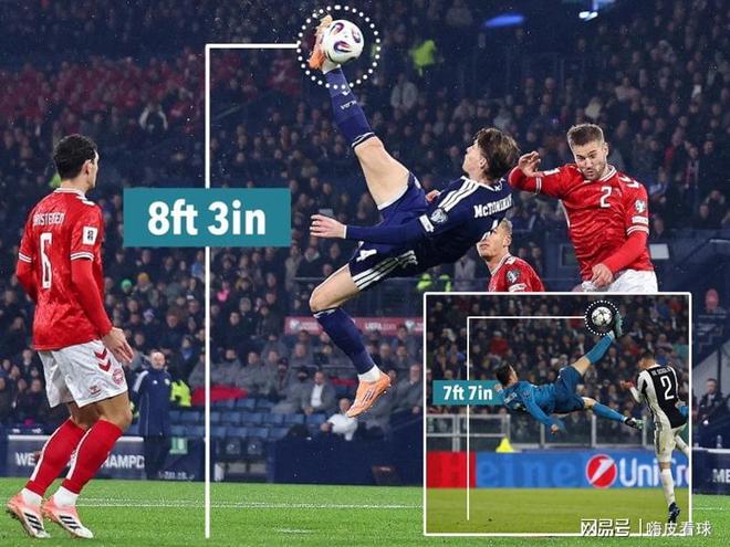 汉普顿公园球场,开场仅仅3分钟,麦克托米奈就以一记精彩的倒钩破门,拉开了一场神奇比赛的序幕。根据数据网站的分析,麦克托米奈射门时离地的高度,达到了8英尺3英寸(约2.51米),比C罗在皇家马德里面对尤文图斯的倒钩射门(7英尺7英寸,约2.31米),还要更高一些。