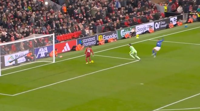 第82分钟,利物浦继续调整,基耶萨和科尔克兹出场替下伊萨克、罗伯逊。伤停补时第4分钟,桑德兰门将罗埃夫斯大脚开球打到前场,伊西多尔高速前插形成单刀并成功过掉阿利松,然而他的射门却被狂奔半场高速回防的小基耶萨成功解围。意大利边锋的努力,让利物浦避免了主场1-2落败的尴尬,也拯救了坐在火山口上的斯洛特。
