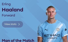 达成英超百球里程碑,哈兰德当选富勒姆vs曼城全场最佳球员
